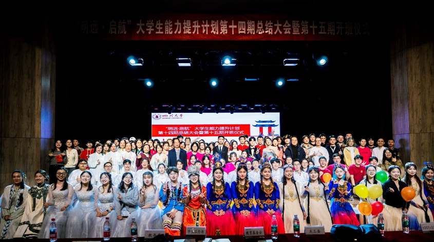 为深化资助育人成效,生动展现资助育人成果,10月24日晚,学工部在江安校区艺术学院小剧场举行了“明远·启航”大学生能力提升计划第十四期总结大会暨第十五期开班仪式。学校相关单位工作负责人,校关工委副主任兼办公室主任汪朝清及部分成员,学生教导员,课程教师,企业代表,以及400余名同学齐聚一堂,共赴这场融合非遗文化与美育精神的青春盛会。活动由主持与表达课程学员陈泽萱、张子豪以及从会说到慧说课程学员刘海姣、文志宁主持。